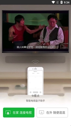 2.手机上安装9i看点后会自动搜索智能电视电视盒子,点击连接。