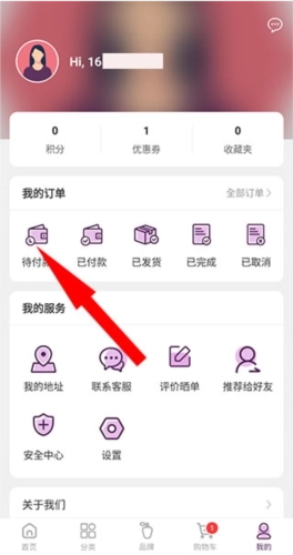 2、在“我的订单”栏目下,找到并点击“待付款”订单,查看当前未付款订单