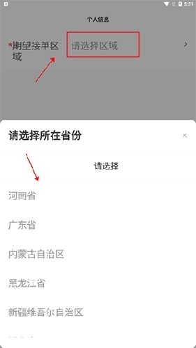4、选择你所在的省份。