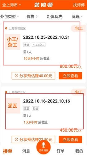 然后你们作为装修师傅的话,你们当然也是可以有自己的条件的,比如说你们想要在什么区域,或者是你们想要一些什么方面的要求,你们都可以自己填写的,然后就可以等待单子来赚钱了。