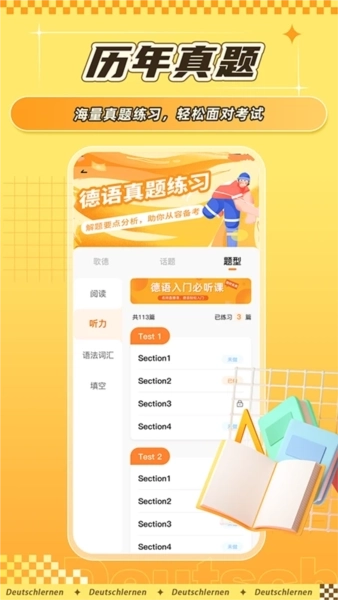 精选德语必备50词,进阶至德语初级基础词汇三部曲,更有看电影学德语等各类场景专题课程。从词,句,对话学习,循序渐进,轻松学德语,媲美沪江开心词场!