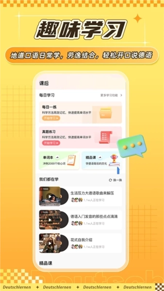 【趣味学习】日常地道口语学习,劳逸结合,趣味满满,在轻松有趣的学习过程中感受德语能力的提升。
