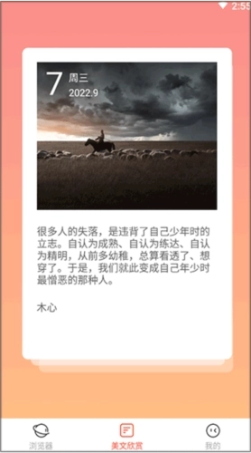 3、美文欣赏板块设有专属页面,每日更新近一周的精选美文,为你开启通往心灵深处的密钥。
