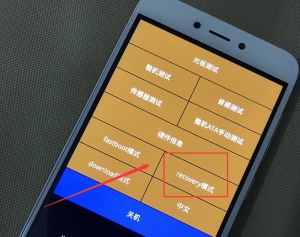 2、当手机处于关机状态时,同时按下音量上键与电源键,即可进入recovery模式。