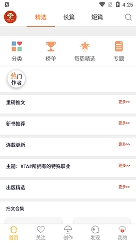 包括了精选、女频、男频等个性页面,您可以根据自己的喜好查看相应的推荐书籍,每一本书都来自友读编辑部的精挑细选。