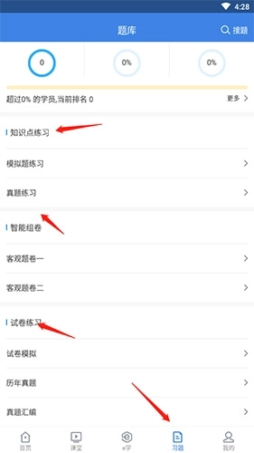 弱项专攻是学员经过练习后,通过大数据计算得出学员掌握能力弱的五个知识点,进而进行专项的强化练习。