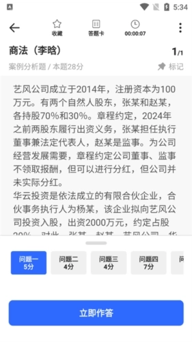 4、熟读案例,然后选择问题一、二、三、四,点击立即作答;