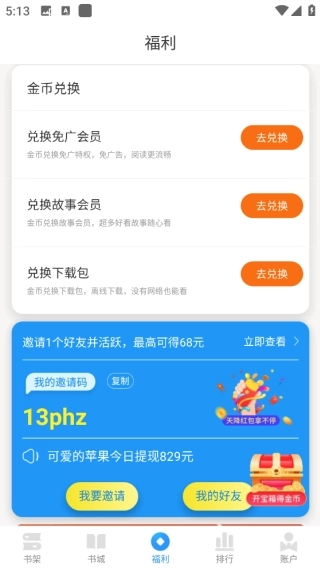4、金币可用于兑换会员,会员享有及一系列福利。