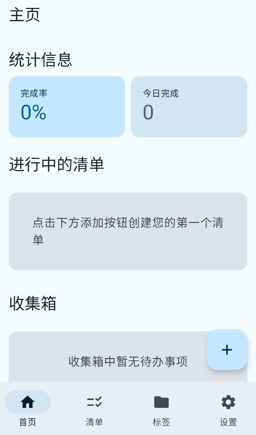 打开“任务清单”模块,即可浏览当前所有待处理的事项;若需添加新的任务列表,点击界面上的“+”图标即可快速完成创建。