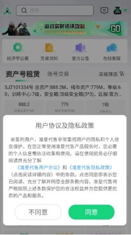 用户首先准星代售,查看并同意隐私政策与用户协议