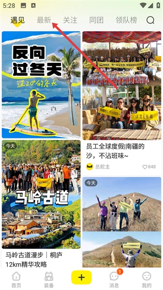 2、在游侠圈页面,我们点击【最新】标签,即可浏览最新的旅途分享。