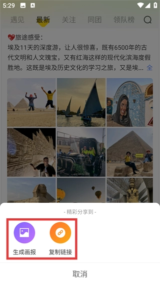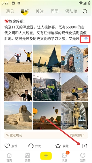 3、接下来,你能够挑选一篇旅途相关内容,然后点击页面下方的分享按钮。