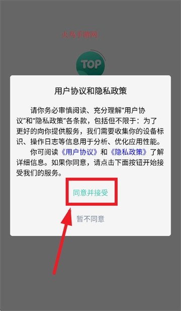 在用户协议和隐私政策提示界面点击同意并接受