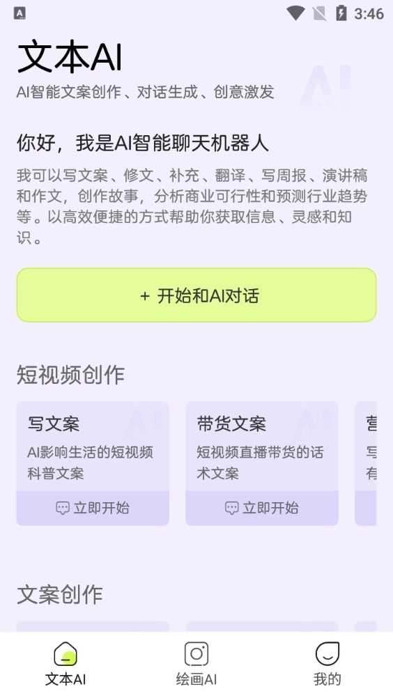 可以依托当下处于技术前沿的对话式内容生成能力,为用户需要创作的各类文本提供生成支持。
