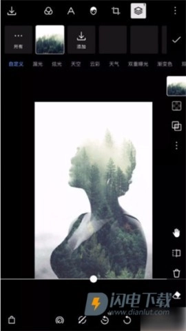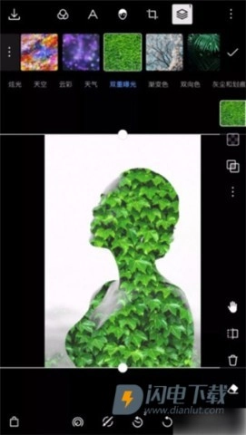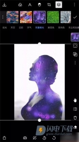 所选的素材会在背景上自然呈现出多重曝光的视觉效果,整个过程无需进行任何手动的参数调节。