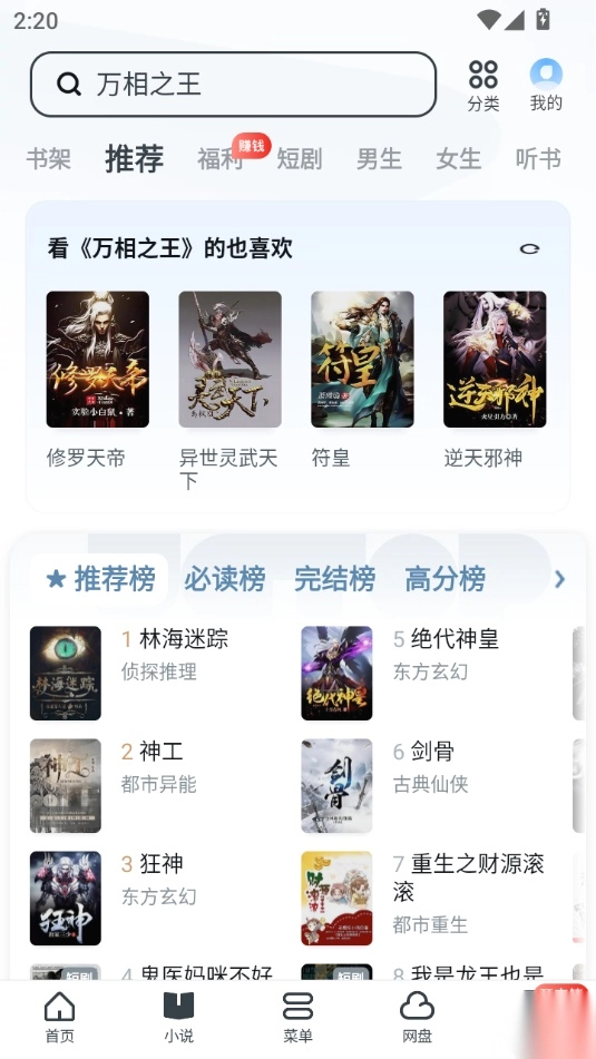 点击小说进入阅读界面