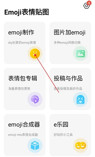进入所选功能后,可点击左下角的emoji选项,进入小表情编辑页面。