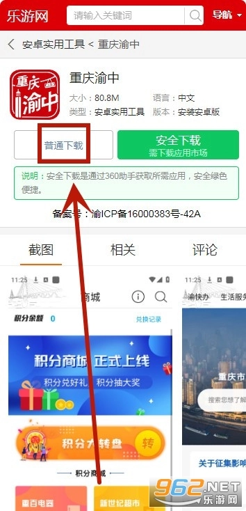 ,助力重庆市民的城市生活更加轻松便捷。在生活服务方面,该应用支持水费、电费、燃气费、有线电视费等多项生活缴费业务,用户只需通过简单的操作就能轻松完成缴费。同时,用户还可以便捷地获取渝中区工商局、检察院、新闻信息中心、人社局、重庆地铁以及辖区内高校等单位的联系电话,便于与政府机构及相关单位进行沟通。此外,应用界面设计简洁清晰,操作流程简单易懂,能够让用户快速熟悉并上手使用。在本页面就可以直接安装重庆渝中,点击【普通】或【立即】按钮就能完成操作。