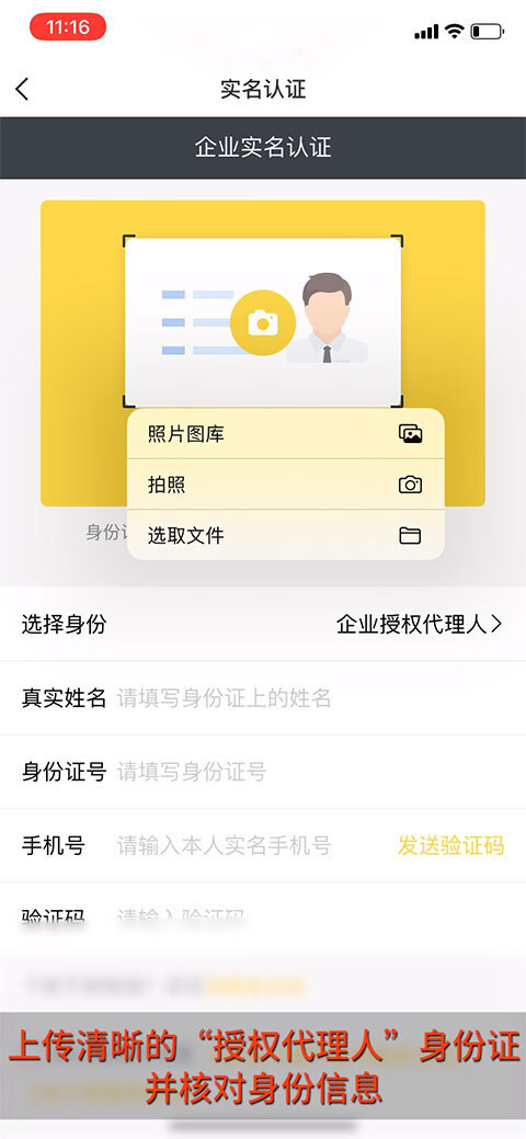 上传清晰的“授权代理人”身份证。