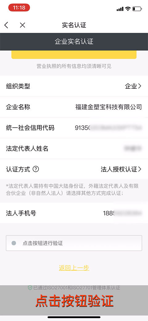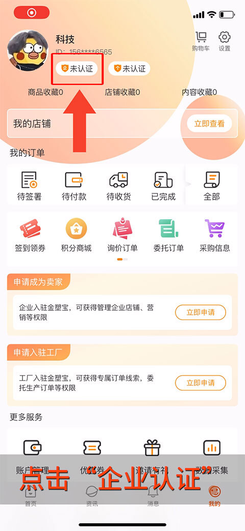 点击“企业认证”。