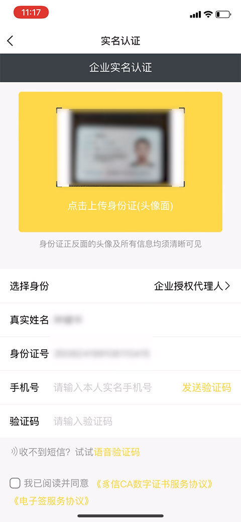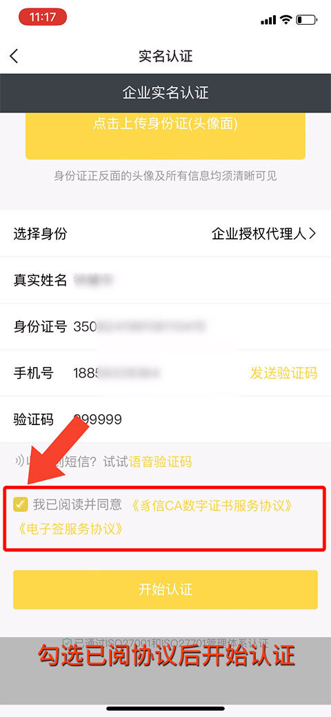 勾选已阅勾选已阅协议后开始认证。