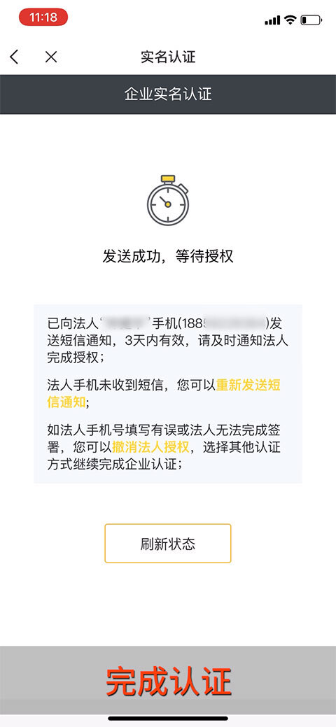 完成认证。