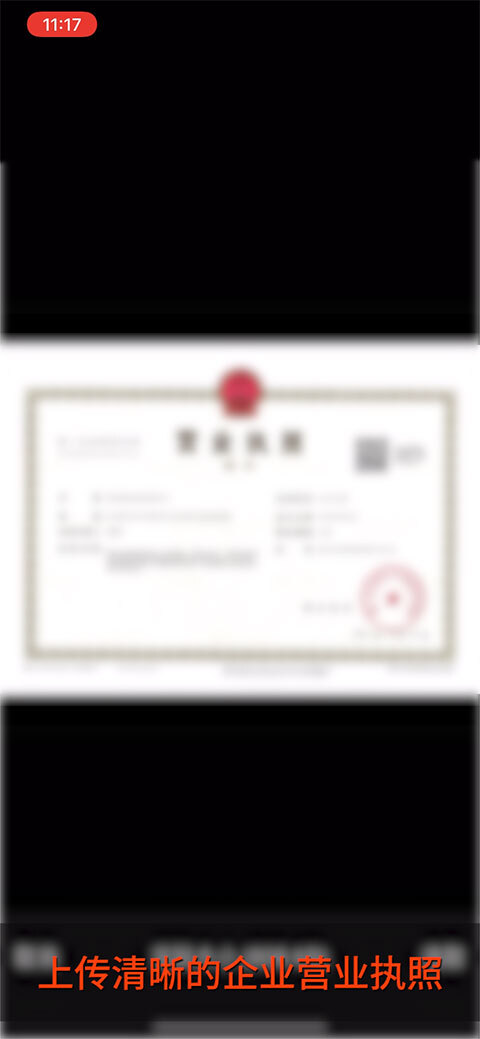 上传清晰的企业营业执照。