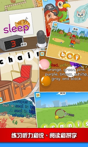 每个游戏都各有特色,孩子们会因此乐于参与其中,同时也能学到更多英语知识。