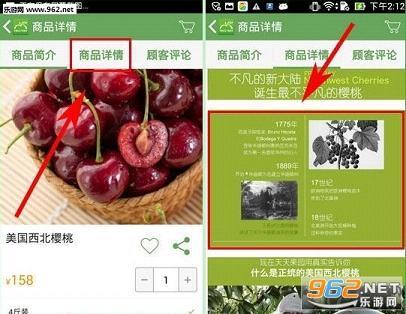 挑选一种水果,接着点击【商品详情】按钮,之后就能看到该商品的详细介绍了(具体可参考下图)。