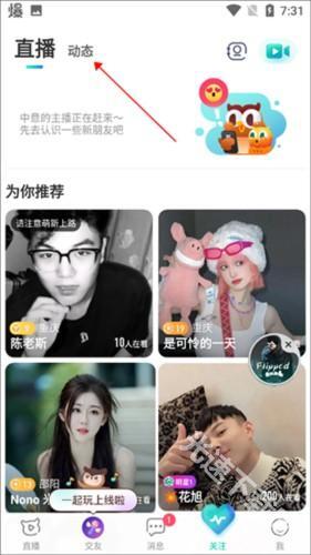 在弹出的新页面里,点击顶部的【动态】选项卡(即下图中红色箭头标注的区域)