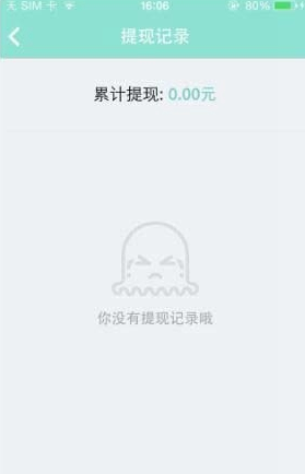 提现页面的左上角设有“提现记录”按钮,点击该按钮就能进入对应的页面查看相关的提现记录(配图展示的是没有提现记录时的界面状态)。