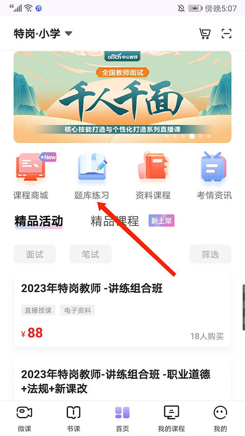 打开中公教师应用,进入其首页界面后,点击左上角的“文字”选项。