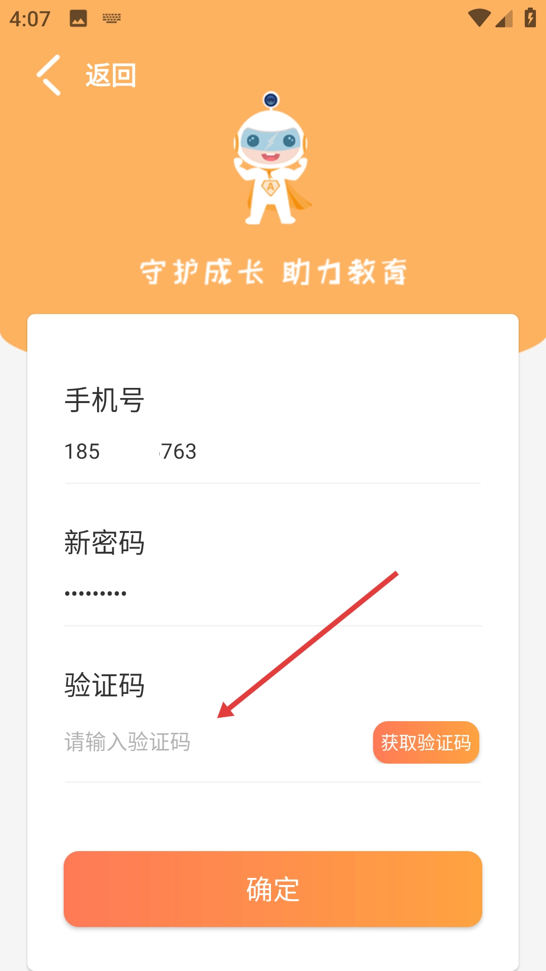 点击【获取验证码】,输入收到的验证码。