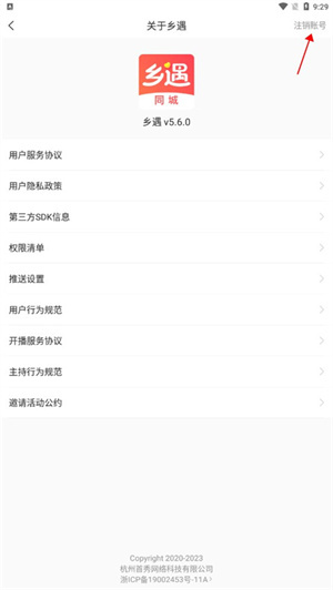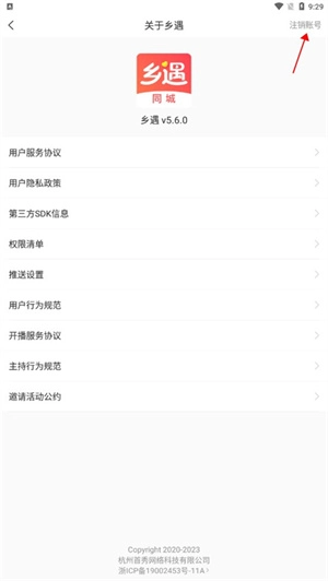 点击右上方注销账号按钮;