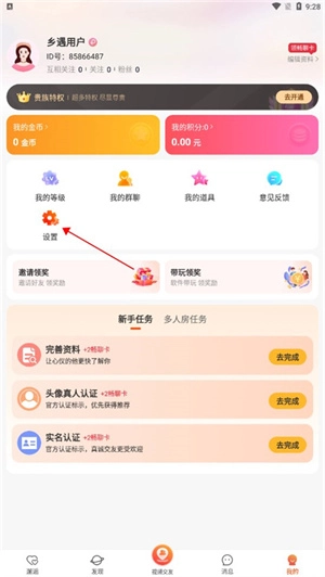 打开手机上的乡遇,点击右下角我的进去。