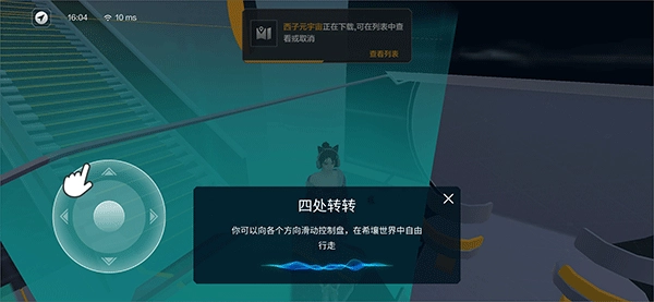 创建完成后,可通过左侧轮盘操控角色移动,右侧屏幕则支持上下左右滑动来调整方向。