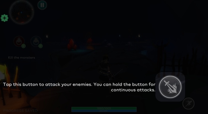 继续前进会触发第一次剧情战斗,这场战斗的操作很简单,只要点击“攻击”按钮就能完成基础操作。