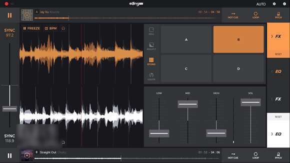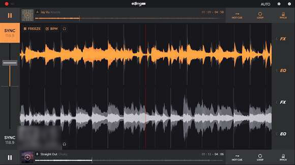 像真正的DJ那样操作:通过交叉推杆能完成专业级的声音过渡效果。你可以手动匹配节拍,也能点击同步按钮来让每分钟节拍(bpm)保持一致,从而实现毫无瑕疵的过渡。