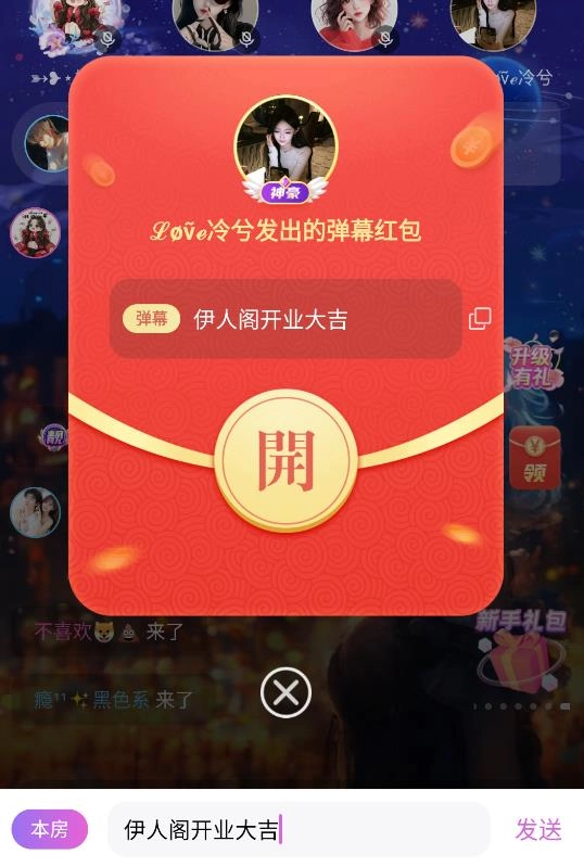 挑选带有红包提示标识的房间进入,发送系统指定的弹幕内容就能领取红包。