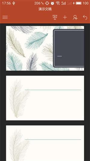 专为安卓手机与平板打造的PPT应用,不仅能让您享受到电脑端PPT熟悉的功能——包括图像、图表、动画效果、渐变等,还为您带来了优化的触控操作体验以及高效便捷的移动办公体验。