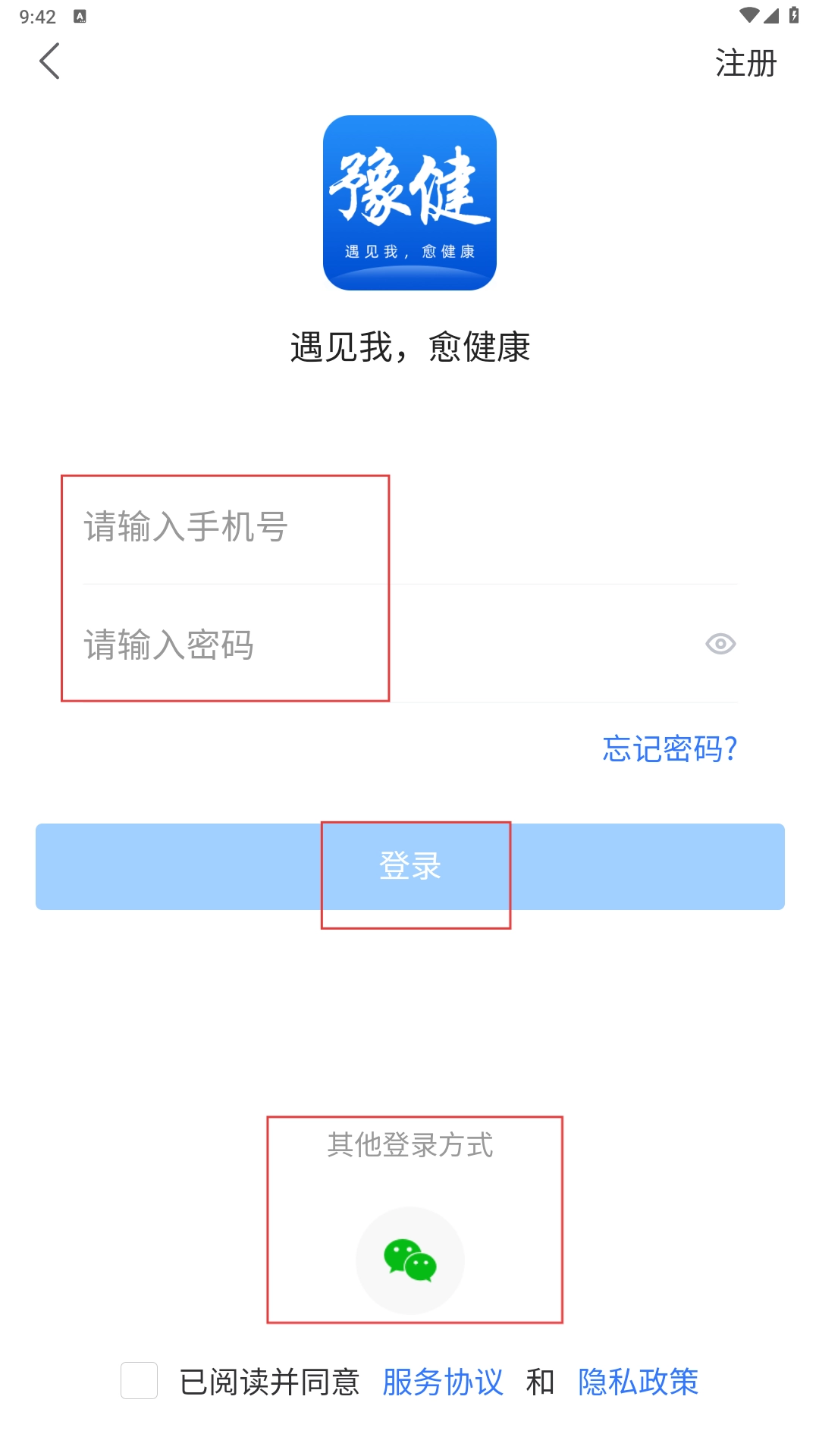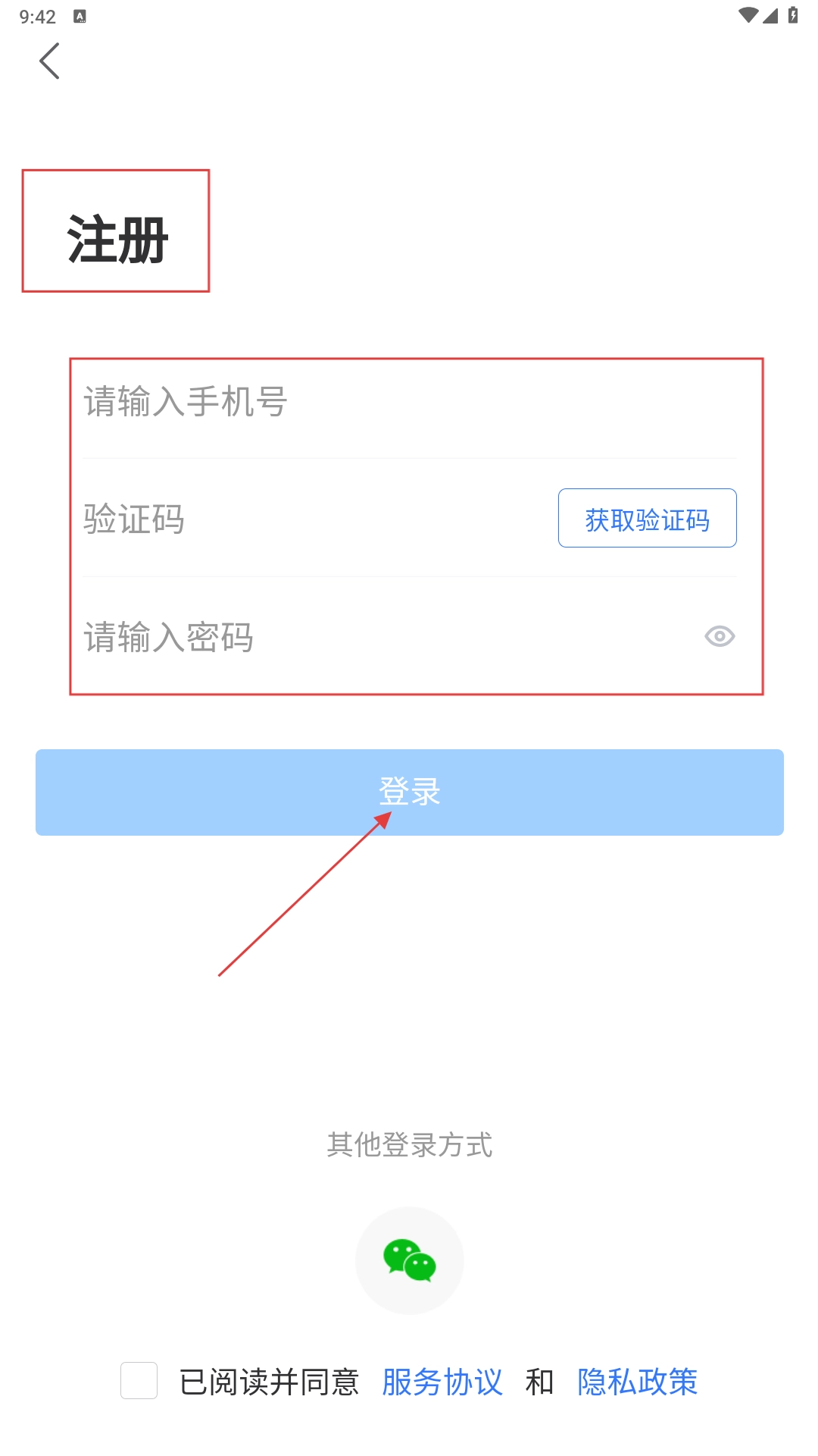 在登录页面,你可以在相应的输入框中填写手机号码和密码,也可以选择【微信-其他登录方式】来进行登录操作。
