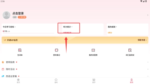 在个人中心可以查看学习统计数据,回顾过往的学习记录以及自己对知识的掌握程度,再依据系统给出的建议来调整每天的训练安排,以此提高学习效率。