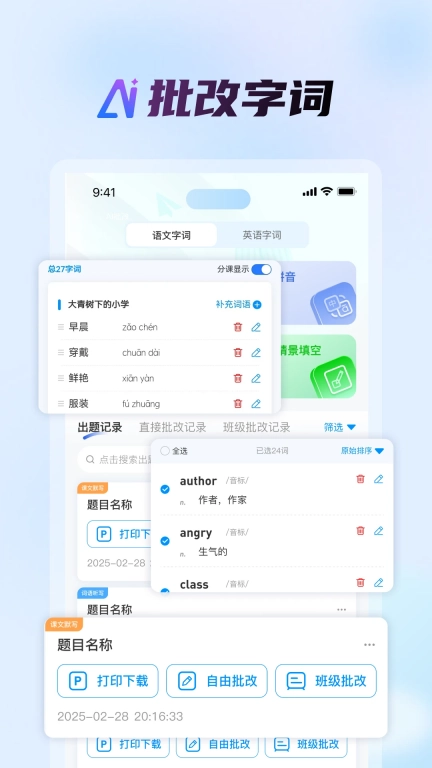 能够对全部字词内容开展批改操作,进而可以查看所有字词的正确与错误情况。