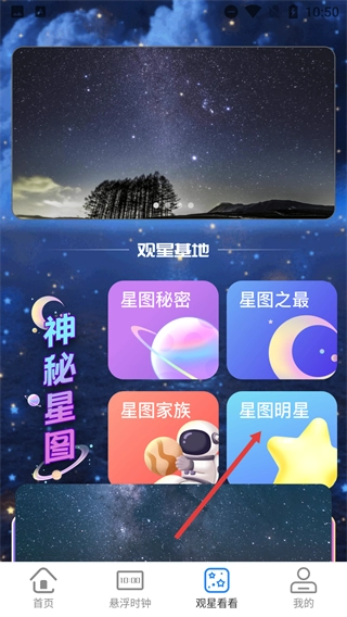 在【观星看看】页面中,点击【星图明星】选项,就能进入对应的星图知识详情页面。