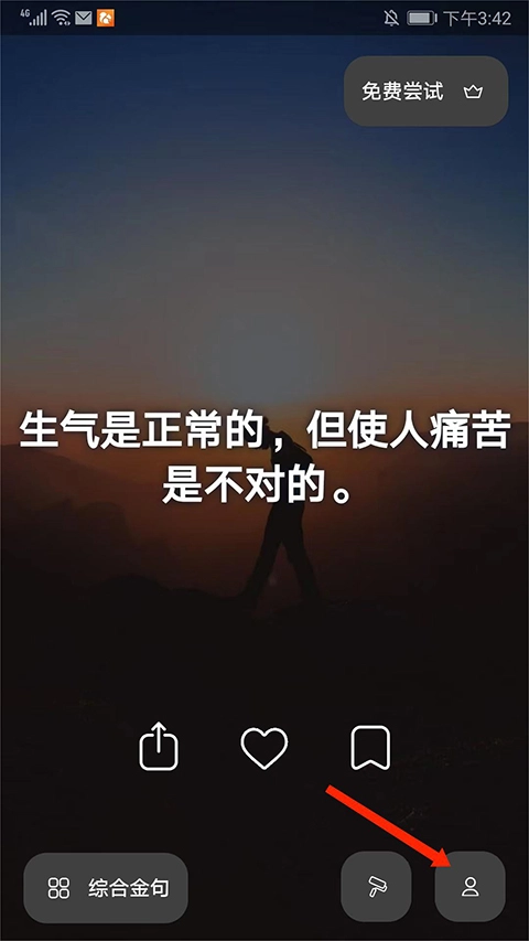 进入应用主界面后,会看到包含综合金句、主题以及我的栏目的页面,此时选择【综合金句】这一选项。