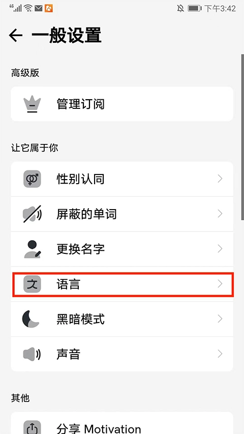 如图,找到并选择【语言】选项,