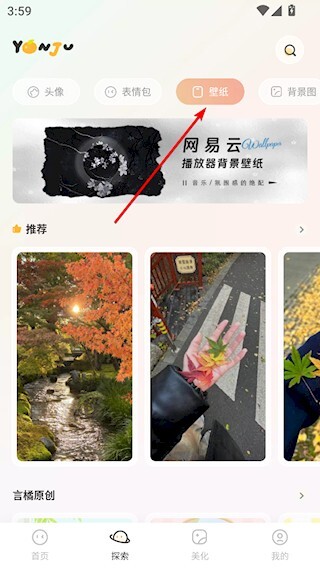 在顶部选择壁纸分类,点击需要的壁纸进行预览