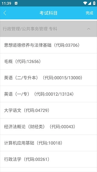选择考试科目