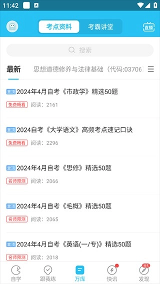 全天免费直播,覆盖多门自考科目,专业讲师全天候在线授课,为你带来高品质的学习体验。