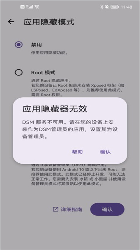 DSM模式无需Root权限,但配置过程比较繁琐,而且可能无法正常运行,因此不推荐采用该模式。
